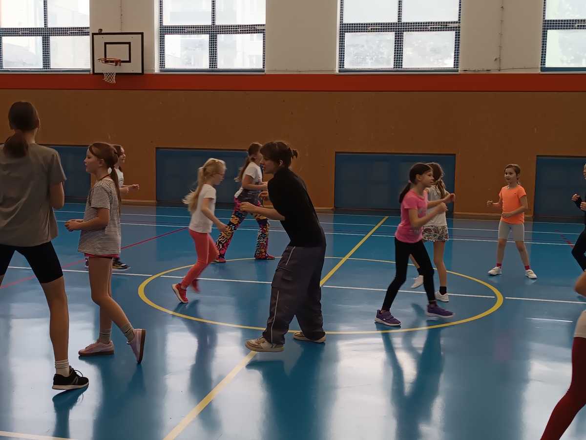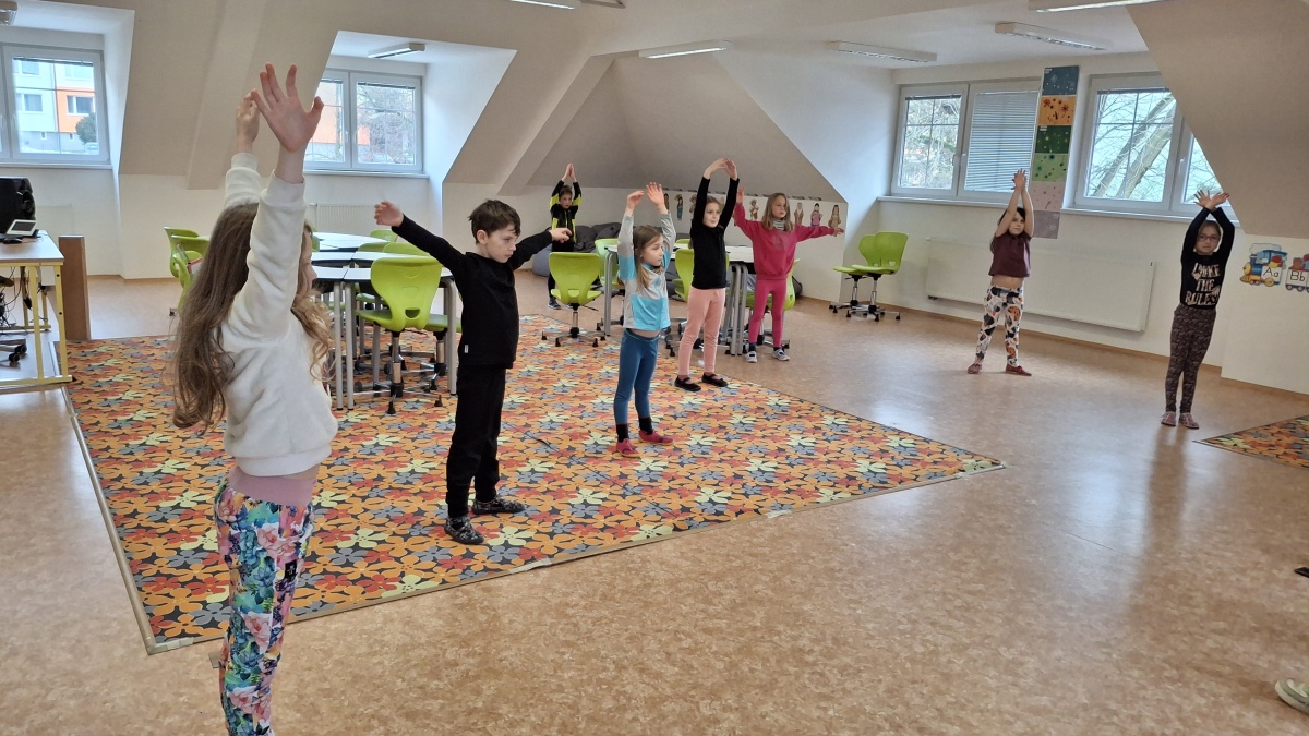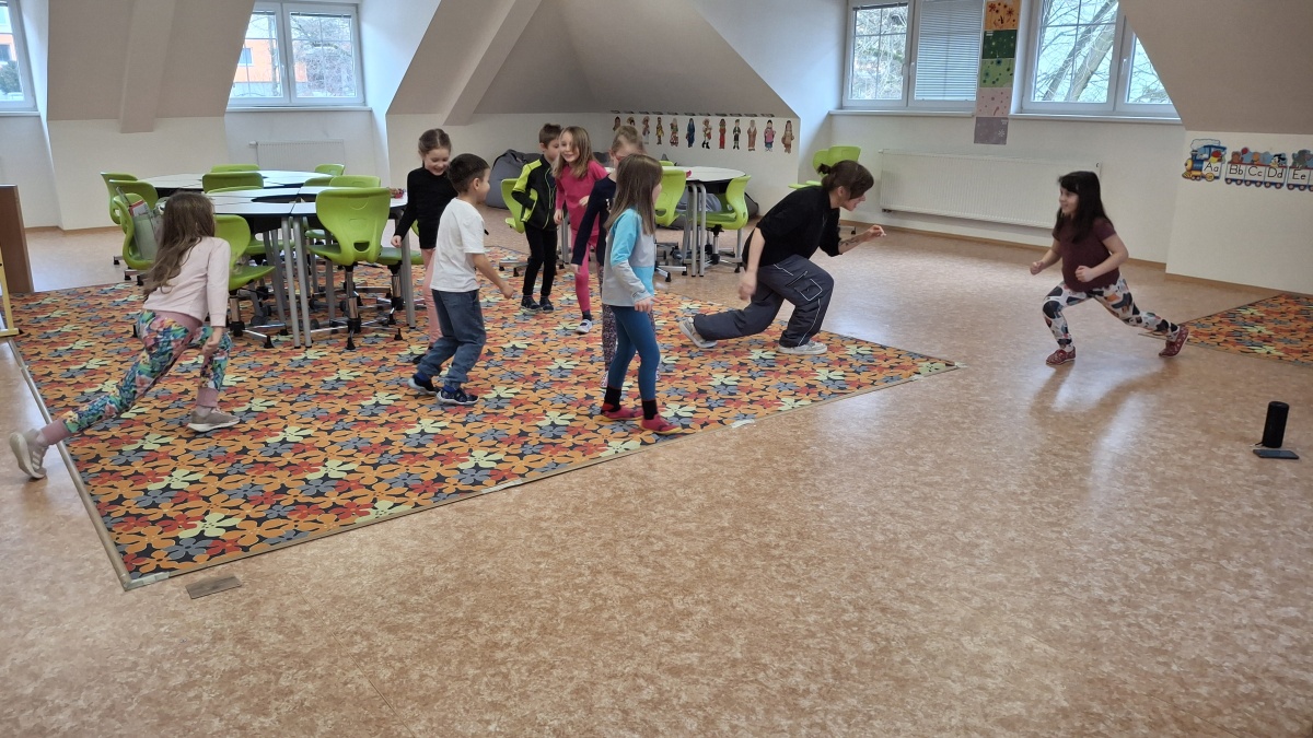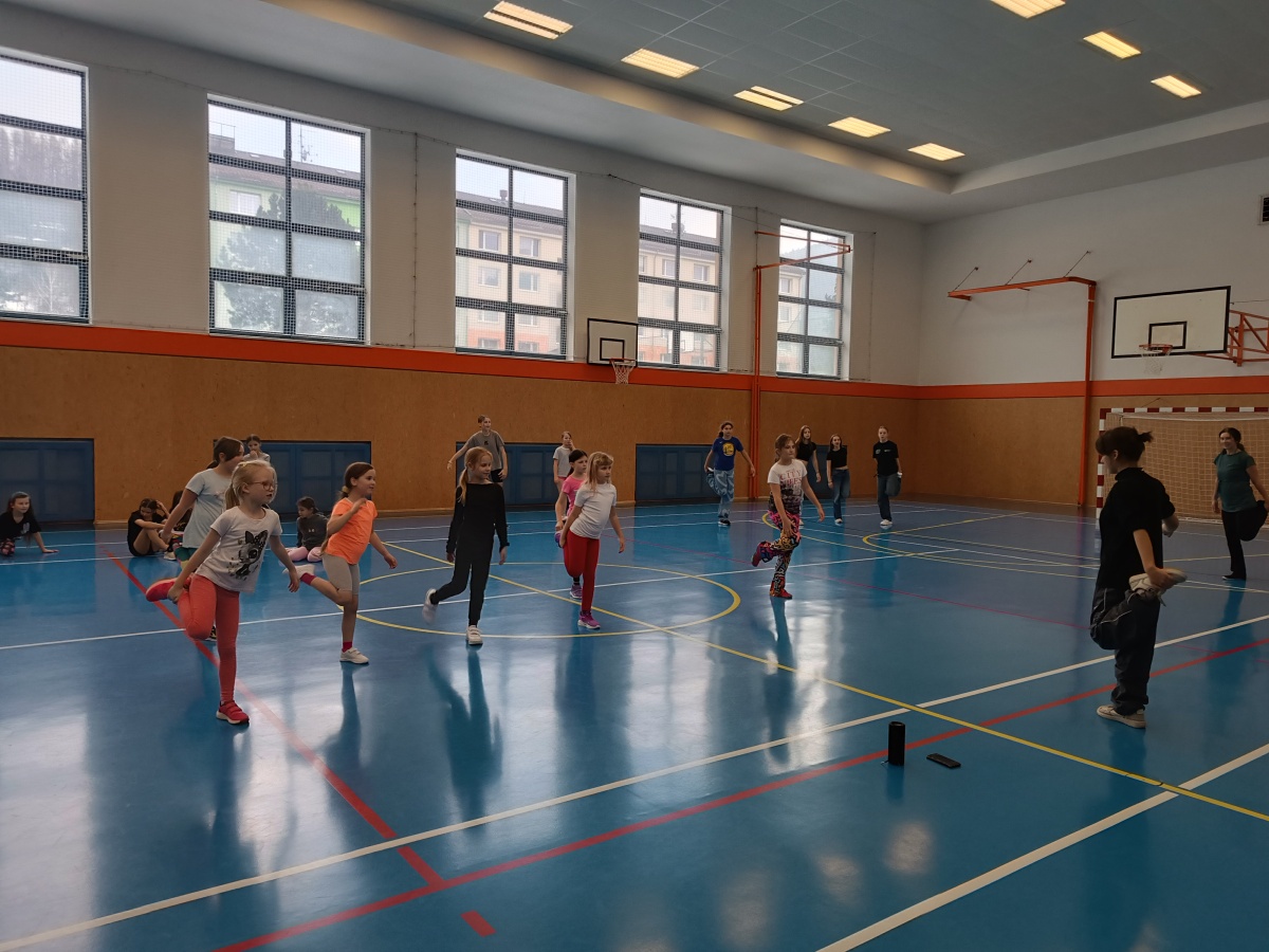 V pondělí odpoledne strávily děti ŠD v příjemné atmosféře školní tělocvičny, která se proměnila v prostor plný hudby a tance. Za doprovodu studentky Kačky rozvíjely své taneční a pohybové dovednosti.