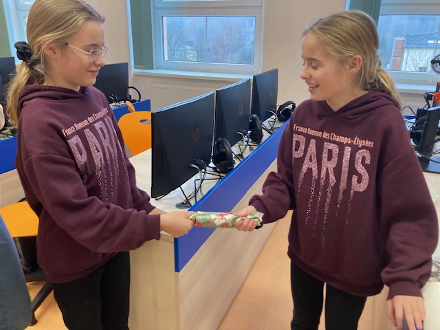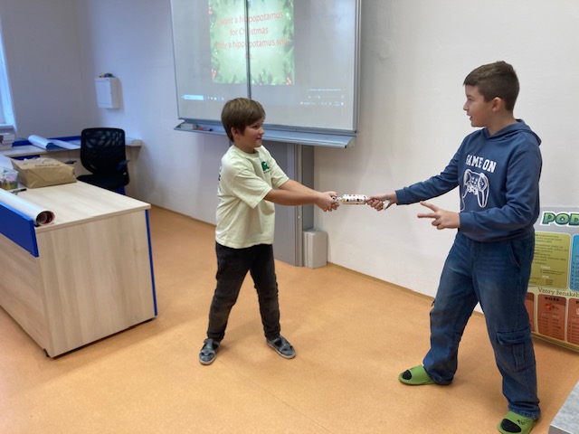 V hodině anglické konverzace jsme se naladili na britské Vánoce a pustili se do výroby tradičních Christmas Crackers. Nejprve jsme si vysvětlili, co to vlastně je, a pak už děti podle anglického zadání tvořily, lepily a doufaly, že tahání zvládnou správně – a hlavně dost silně. Kdo uspěl, našel uvnitř milé překvapení a také vánoční vtipy – některé nás opravdu pobavily, jiné byly… no, tradičně britské :-). Hodina utekla rychleji než vánoční prázdniny, ale všechno jsme stihli, a dokonce zbyl čas i na úklid.